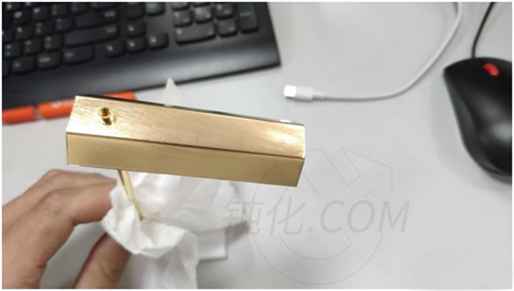 銅容易氧化,在使用一定時間后表面會產生一層氧化皮,影響產品的性能及美觀。現在客戶有一批黃銅零件已經氧化變色,有變暗,紅點,指紋印,前期有采用機械拋光速度慢而且外觀效果不理想。了解到“深圳市鈍化技術有限公司”有專業的銅材除氧化及抗氧化方案,于是找到了我們,要求恢復銅件表面光亮,抗氧化效果保證在一年不氧化變色且操作簡單的要求。