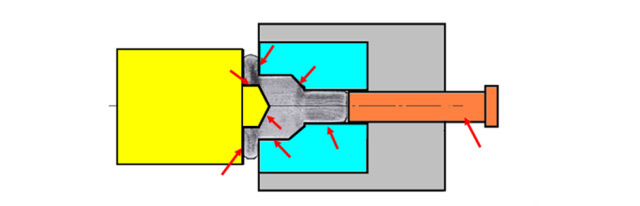 2、工模具形狀的影響:由于工模具形狀不同,所施加給坯件的作用力,以及模具與坯件接觸的摩擦力也不一樣,引致金屬在各方向流動阻力的差異,從而金屬在各方向流動分配也有所差異。