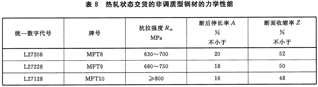 5)熱軋狀態非熱處理型鋼材的力學性能。