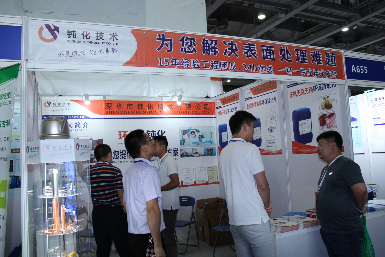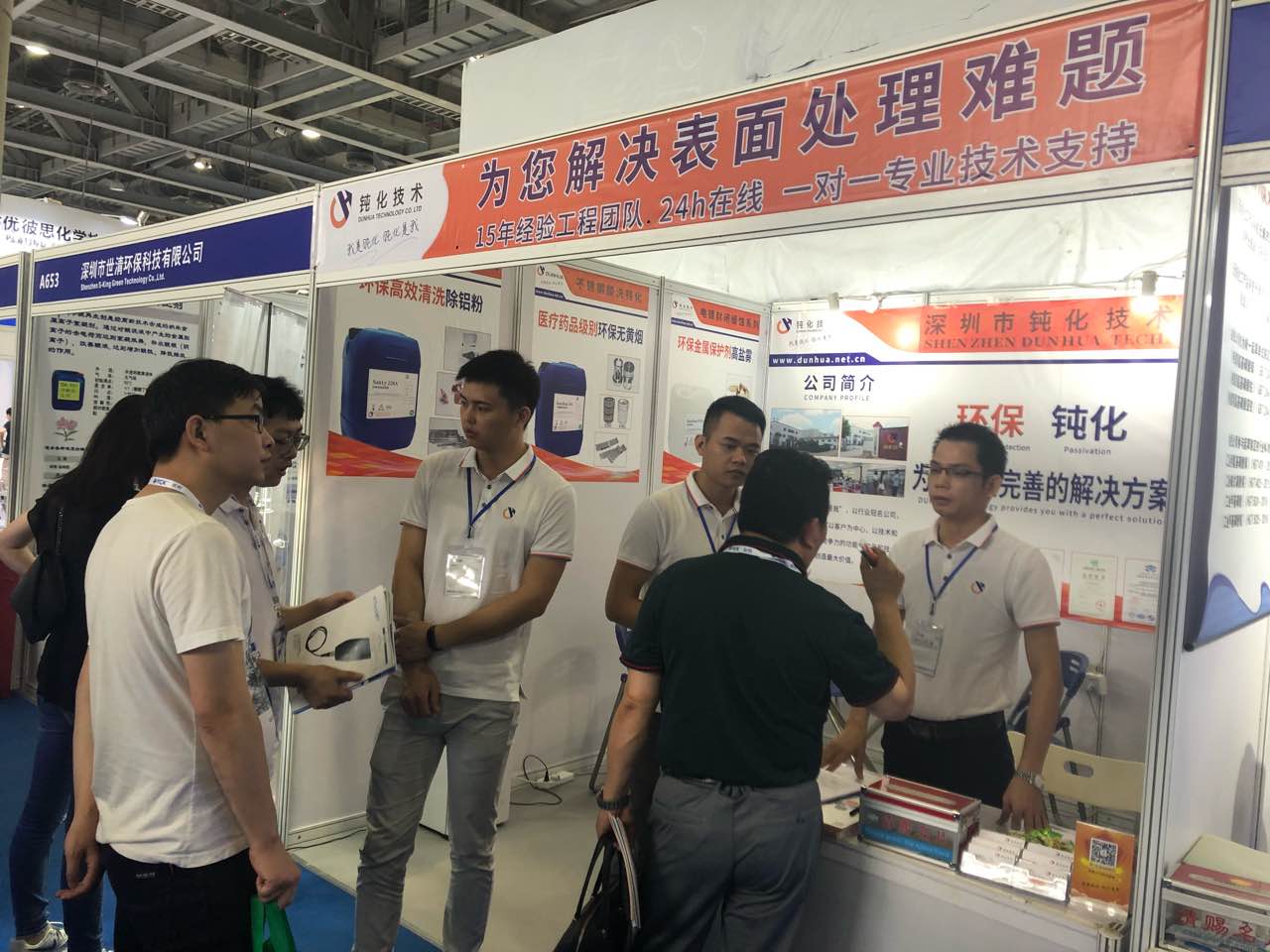 在本次展會上,我司展出了不銹鋼無煙酸洗鈍化系列、不銹鐵無鉻鈍化系列、鋁材鈍化系列、銅拋光鈍化系列、電鍍封閉系列、新能源電池配件清洗系列,得到了參展者的強烈興趣和廣泛關注。