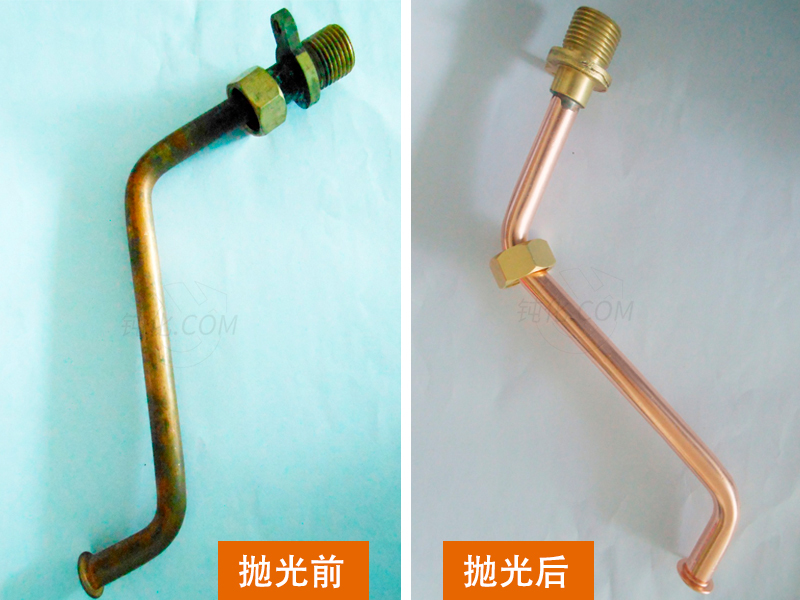 ④:一次性不要放入太多的工件,將銅工件浸入配兌好的銅拋光劑溶液中,同時翻動工件,使工件拋光均勻。大約1到3分鐘之后銅工件呈黑色。