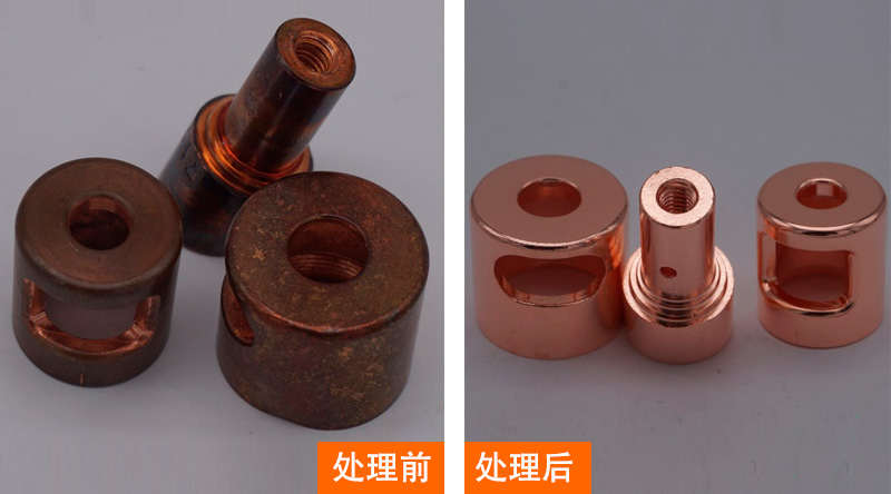 品質(zhì)要求:銅是一種比較活躍的金屬容易氧化,在使用一定時間后表面會產(chǎn)生一層氧化皮,影響產(chǎn)品的性能及美觀。該客戶生產(chǎn)的銅件已經(jīng)氧化變色,有變暗,紅點,指紋印,達不到出貨要求的外觀色澤一致,抗氧化效果保證在一年不氧化變色標準。前期有采用人工、機械拋光效率低而且工件公差不一致外觀效果不理想等不良。后從同行那邊了解到我司有專業(yè)的銅材除氧化及抗氧化的藥水及方案,于是找到了我們,之后我司工程師到東莞塘廈鎮(zhèn)XX五金制品有限公司了解了具體品質(zhì)要求及設(shè)備狀況后結(jié)合現(xiàn)場情況制定了幾套方案給這家客戶試樣,最終采用了如下方案。