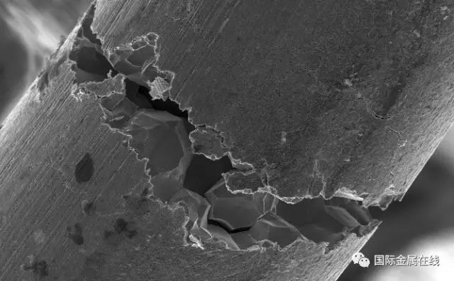 當鋼無論是加熱或冷卻通過450~850 ℃時,碳便可形成( Fe 、Cr) 23C6 從奧氏體中析出而分布在晶界上。( Fe 、Cr) 23C6 的含鉻量比奧氏體基體的含鉻量高很多, 它的析出自然消耗了晶界附近大量的鉻, 而消耗的鉻不能從晶粒中通過擴散及時得到補充, 因為鉻的擴散速度很慢, 結果晶界附近的含鉻量低于鈍化必須的的限量(即12 %Cr) ,形成貧鉻區, 因而鈍態受到破壞, 晶界附近區域電位下降, 而晶粒本身仍維持鈍態, 電位較高, 晶粒與晶界構成活態———鈍態微電偶電池, 電池具有大陰極小陽極的面積比,這樣就導致晶界區的腐蝕。